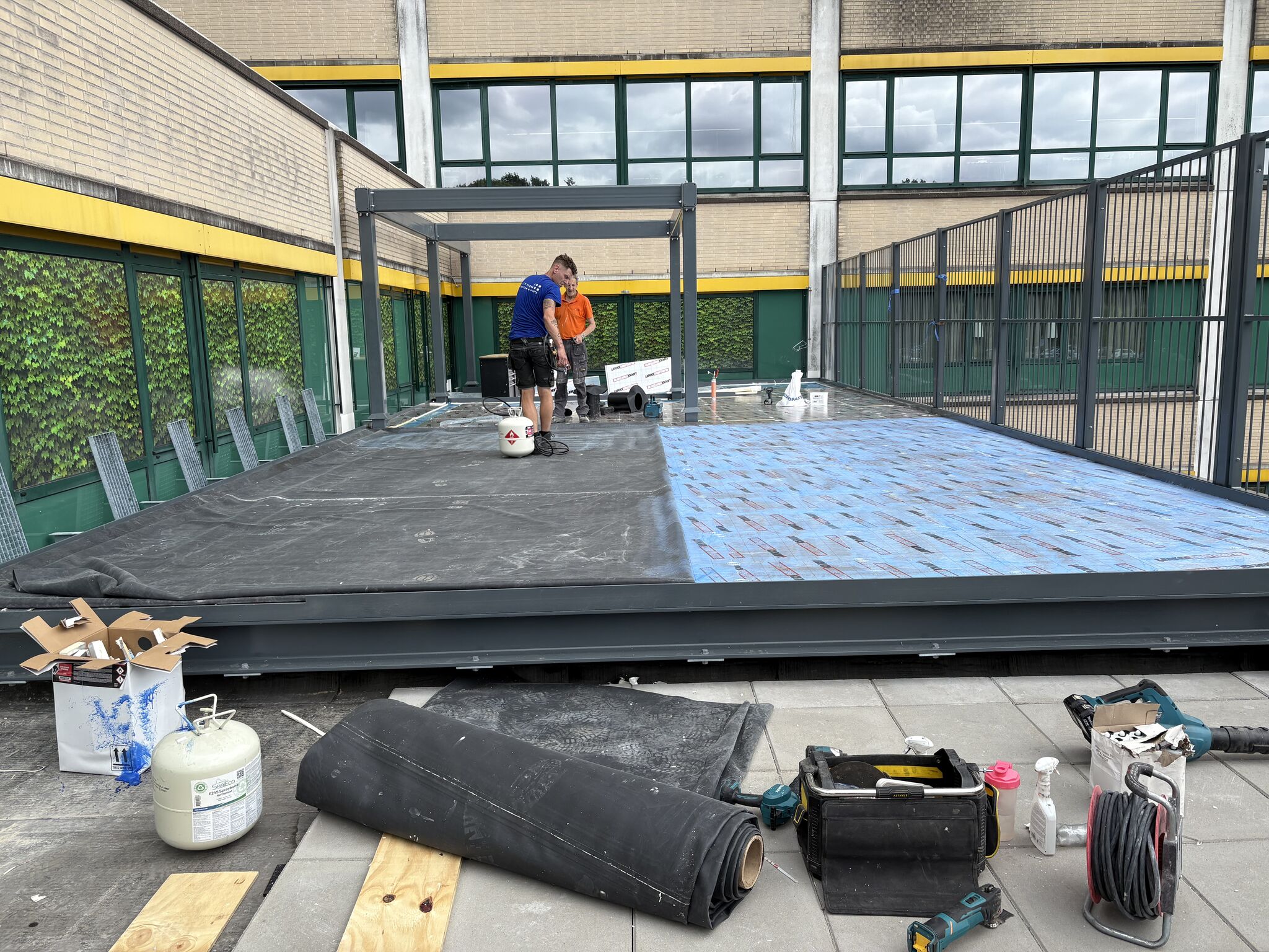 Beginfase van het DutchPanna® sportdakterras bij een ziekenhuis