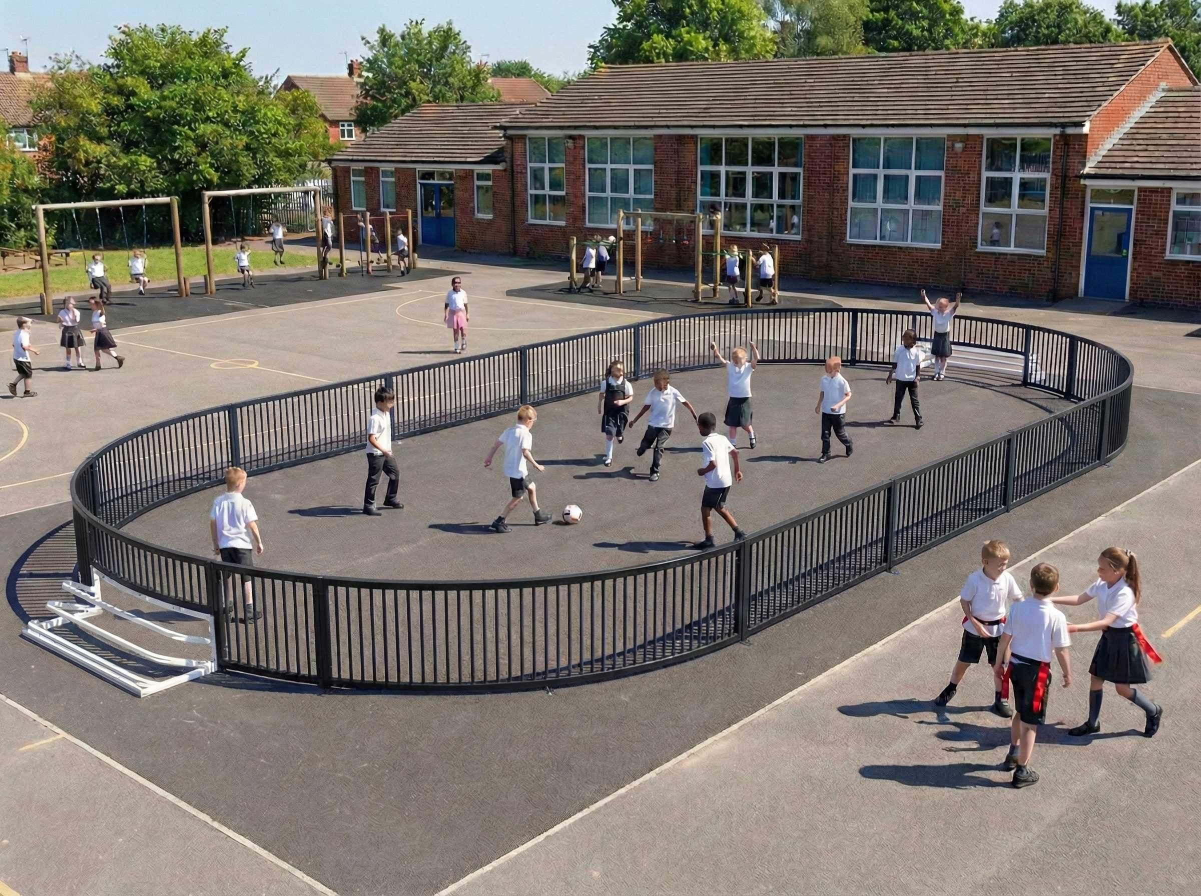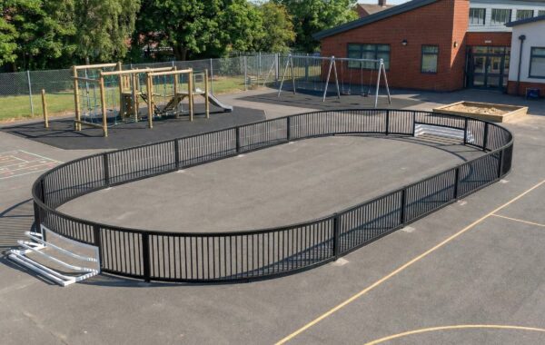 De PK 3012 EVOLUTION® is een elegante ovale pannakooi met een speeloppervlak van 6 x 12 meter en een framehoogte van 0,75 meter. Gemaakt van gegalvaniseerd staal met een duurzame coating, leverbaar in de standaard kleur: zwart hekwerk met witte doeltjes.